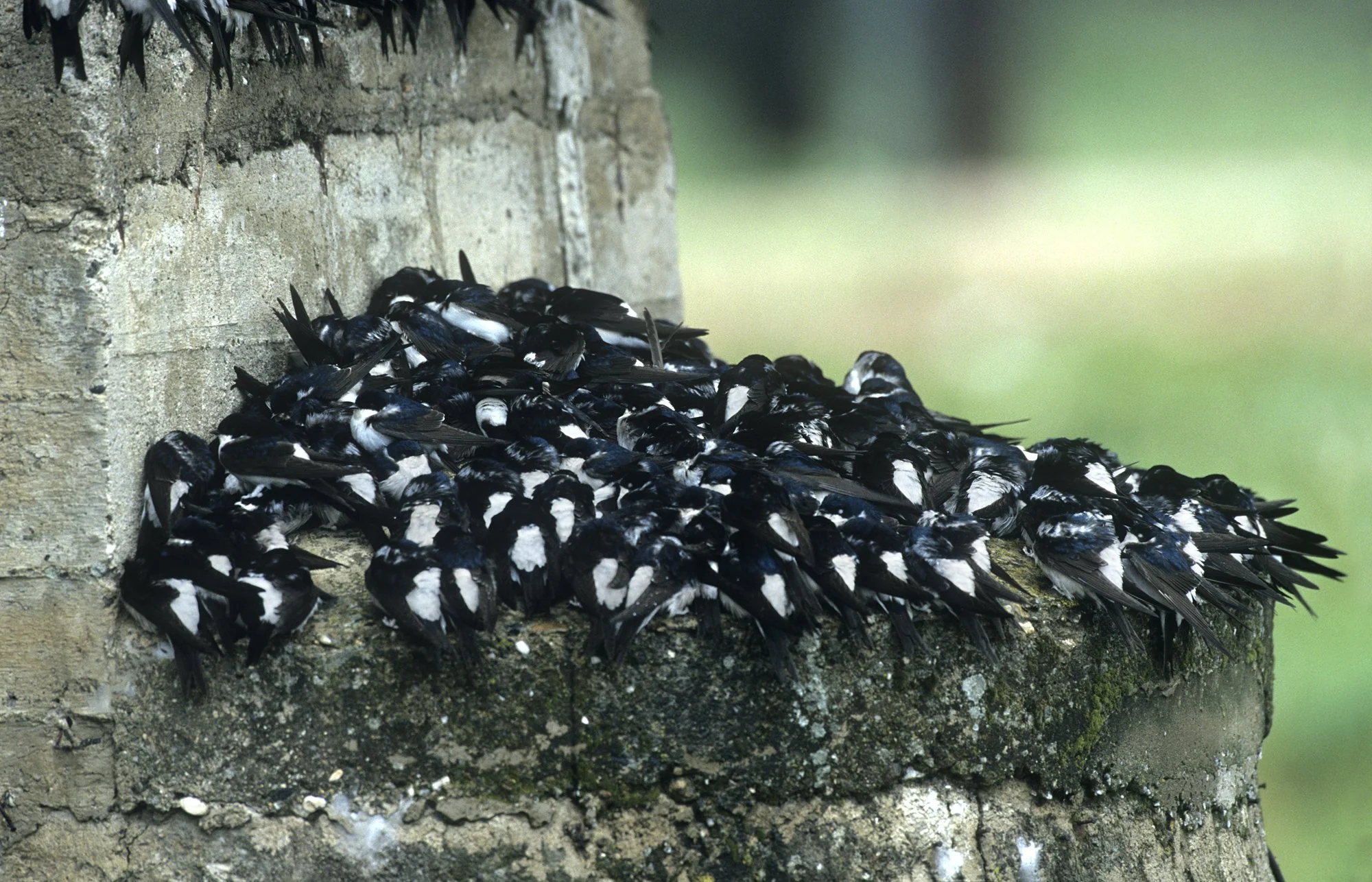 Above: House Martins face challenges and threats throughout their lives. Here, a flock has been grounded on migration by unseasonal cold and wet weather in the Mediterranean. Photo ©Paul Sterry/Nature Photographers Ltd