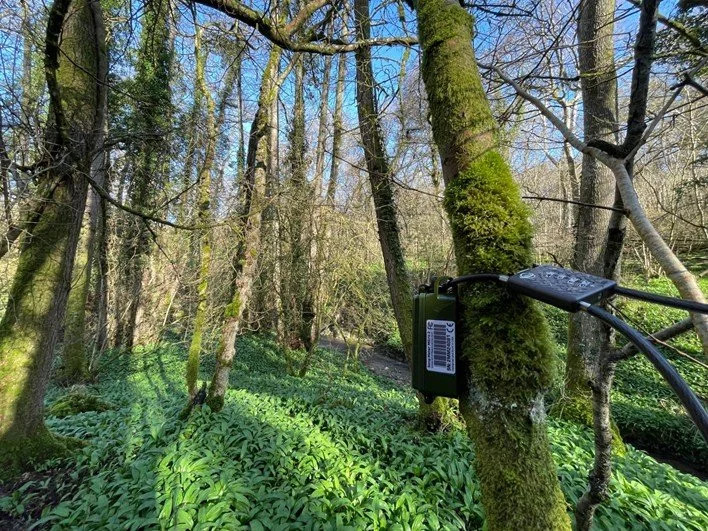 A recorder in a riparian alder woodland in Avon. Photo Rufus Dawson.